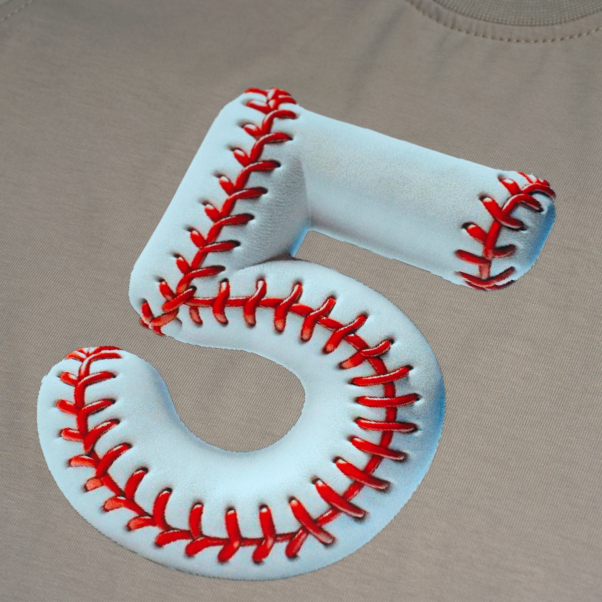 • The number is designed with a 3D baseball texture, featuring a white leather grain finish and iconic red stitching for a realistic, athletic look.