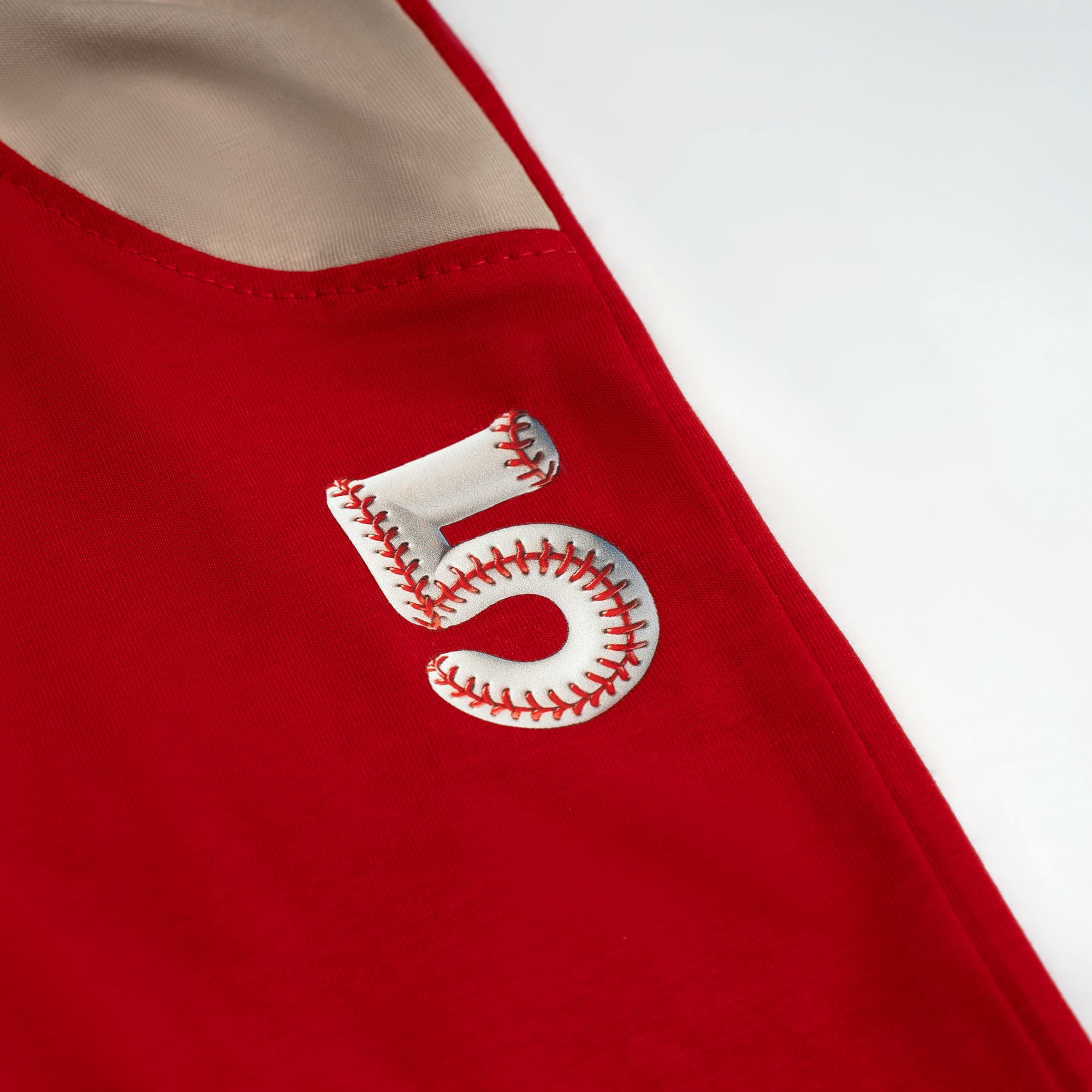 • Graphic: A miniature “Number 5” baseball graphic is placed on the left leg to complete the coordinated ensemble.