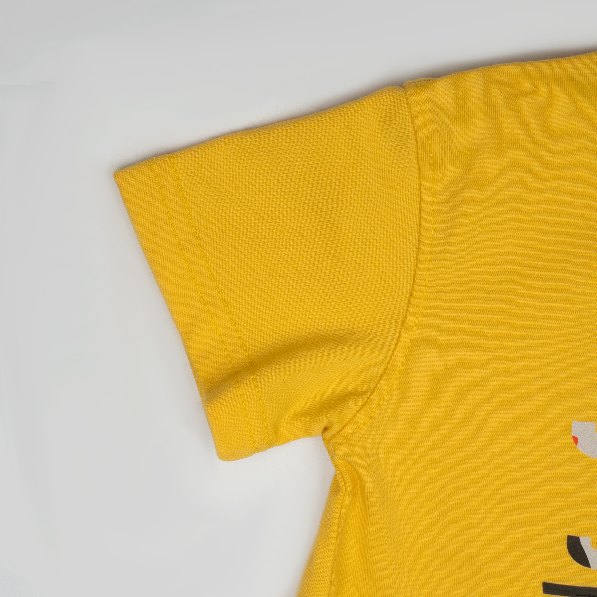 Color: The t-shirt is a warm, yellow that provides a rich, sunny base. The shorts are a deep matte black, creating a sharp, high-contrast visual.