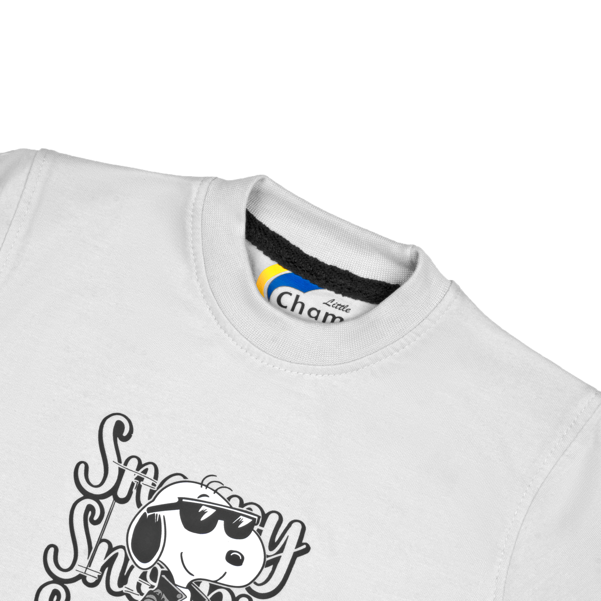 Branding: The “Little Champ” brand logo is clearly printed on the internal neck label of the shirt.