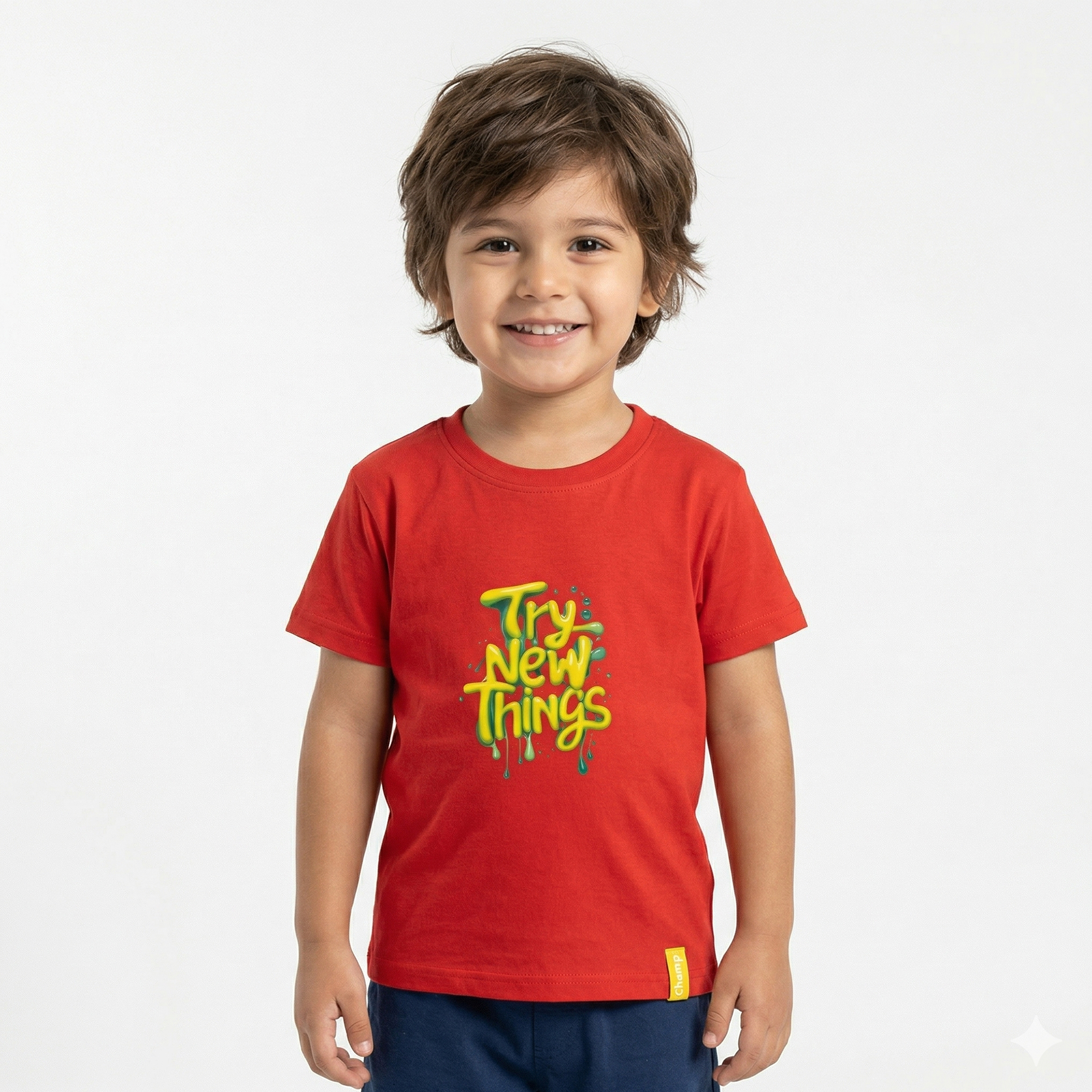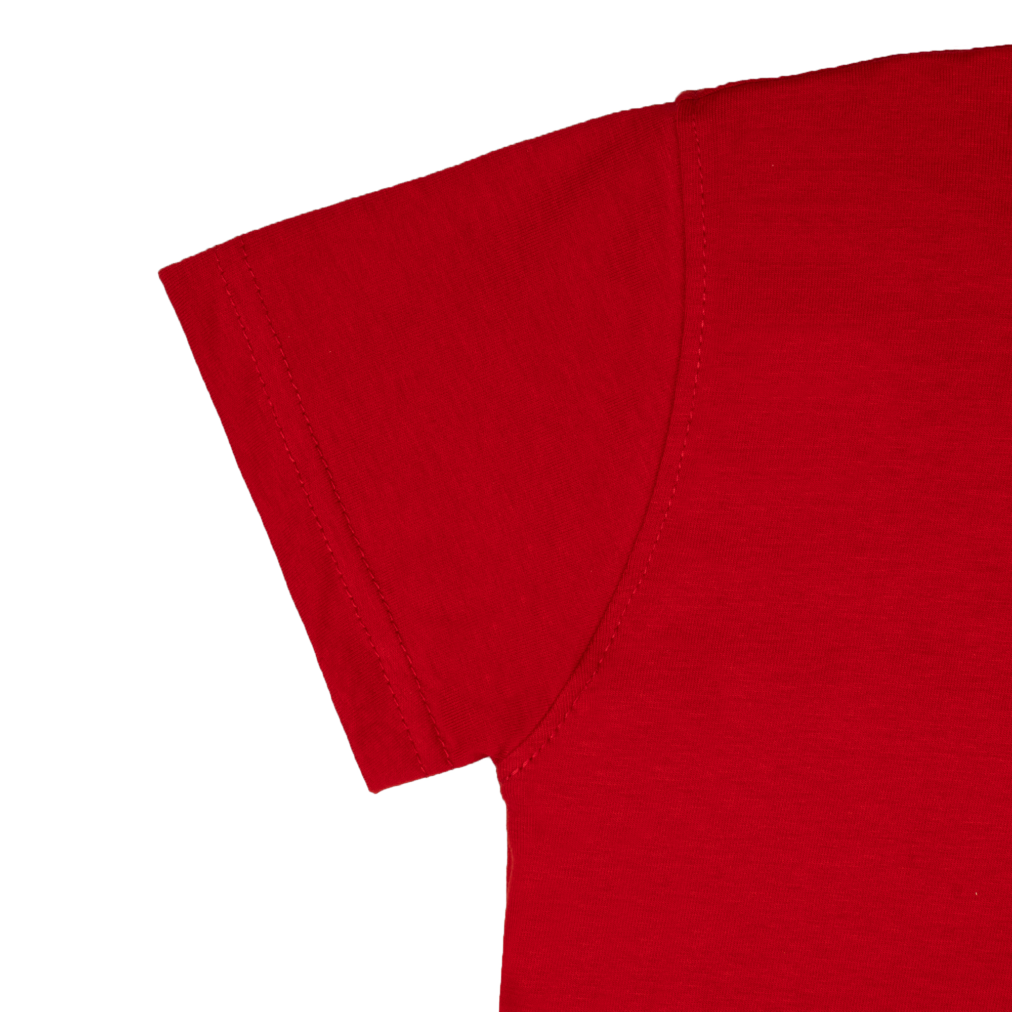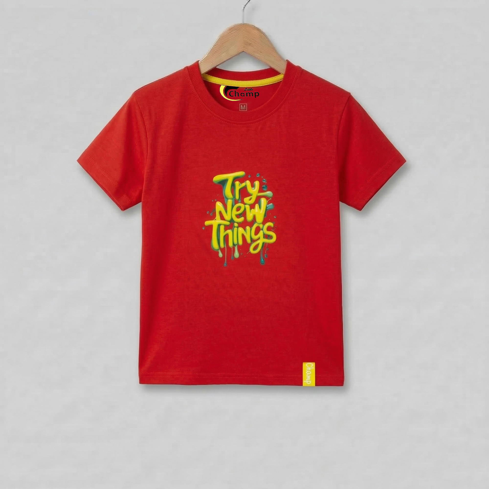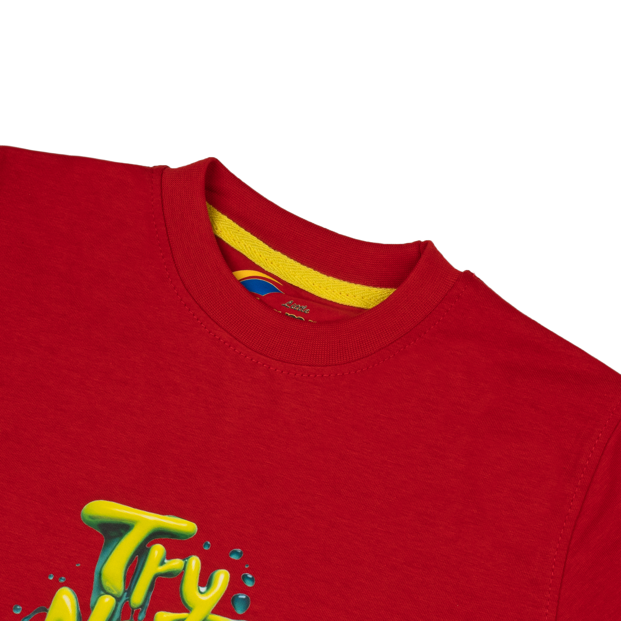 This is a bold and energetic tomato-red t-shirt for children from the “Little Champ” brand. Combining a fiery base color with a high-contrast graphic, this tee is designed for kids who love to stand out.